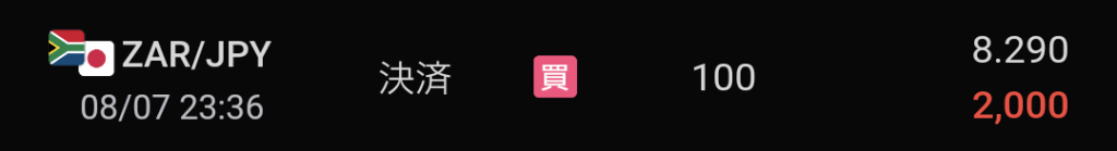 取引通貨(数量):南アフリカランド/円[ZAR/JPY](234万通貨)