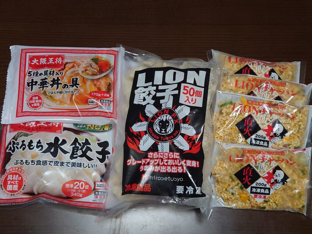 いつも通りのLION餃子とLIONチャーハンに加えて、中華丼の具と水餃子でした。