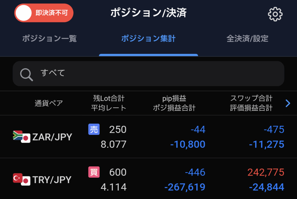 しかし着実にスワップポイントの増加、微々たる量ですが決済損益の圧縮が進んでいます。