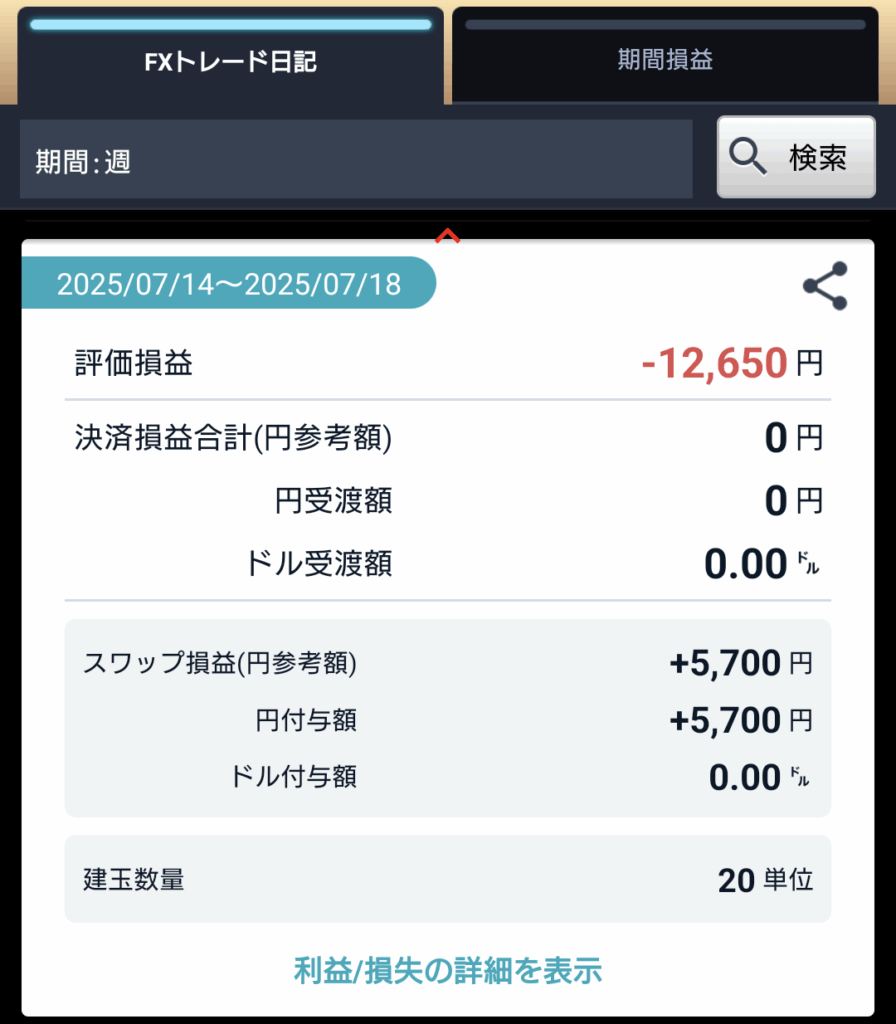 ■未実現スワップ:\ -6,232(今週保有ロット合計¥0 – 前週保有ロット分合計¥-6,232)