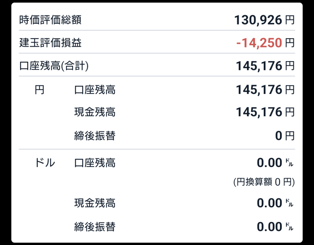 資産が先週に比べて10万円程減ってしまいました( ノД`)シクシク…