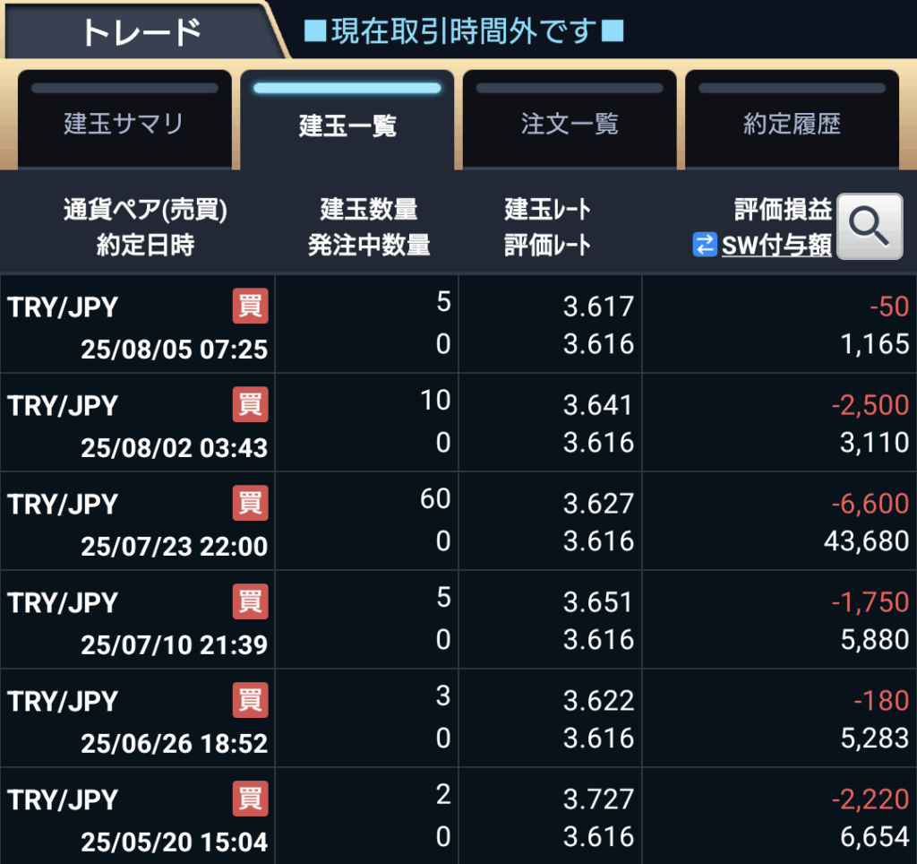 若干スワップポイントが減ってきてはいますが、前回のトルコ政策金利が市場の予想より減ったなど要因があるので仕方ないと思います。