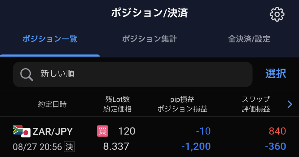 ■未実現スワップ:\ 840(今週保有ロット合計¥840- 前週保有ロット分合計¥0)