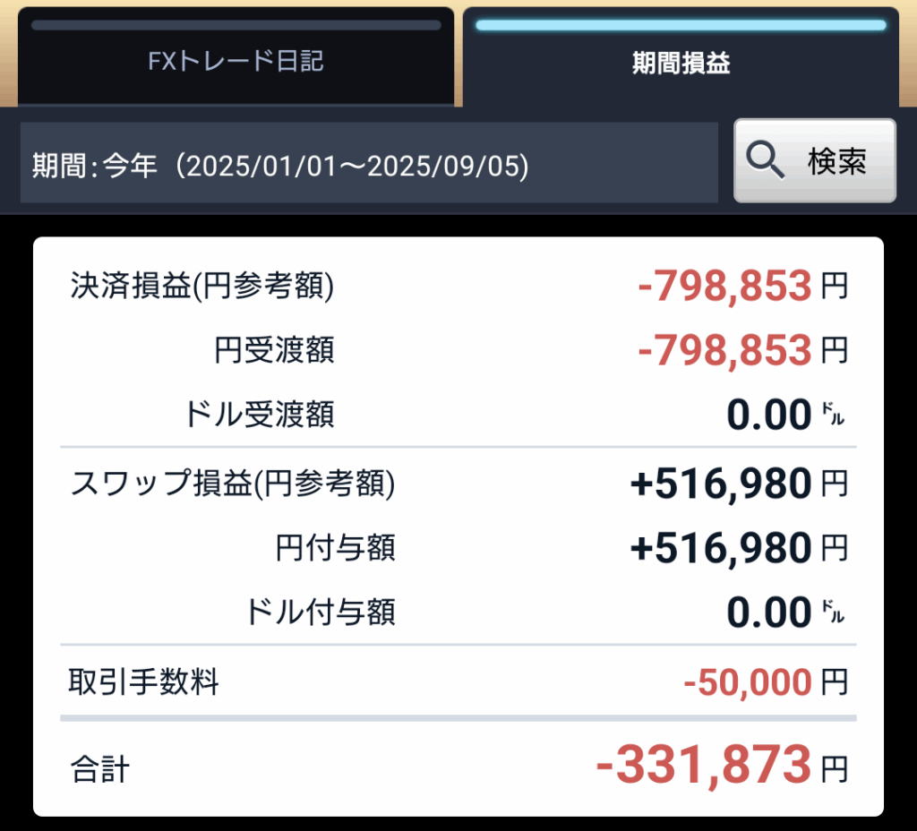 スワップポイントの一部を開設したみんなのFXに少しずつ移動し、受け取れるスワップポイント増やしていく予定の為、何とか本年度中にプラマイゼロになる程度でしょうか。