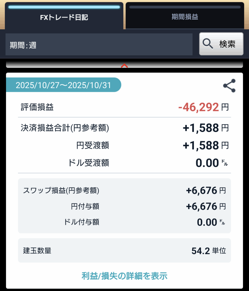 ■未実現スワップ:\ -2,220(今週保有ロット合計¥-2,760 – 前週保有ロット分合計¥-540)